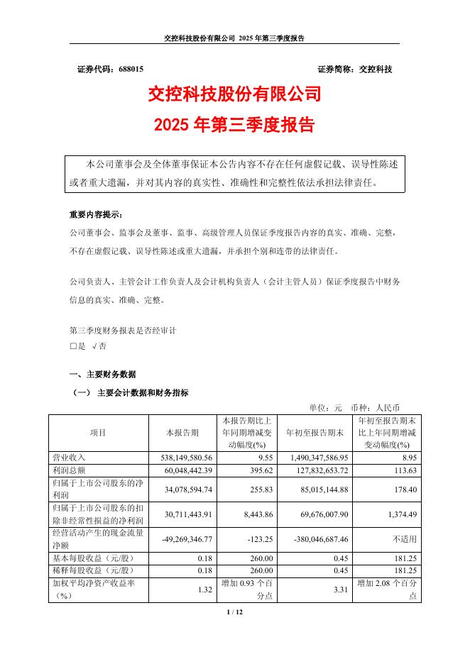 688015-交控科技:交控科技股份有限公司2025年第三季度报告.pdf
