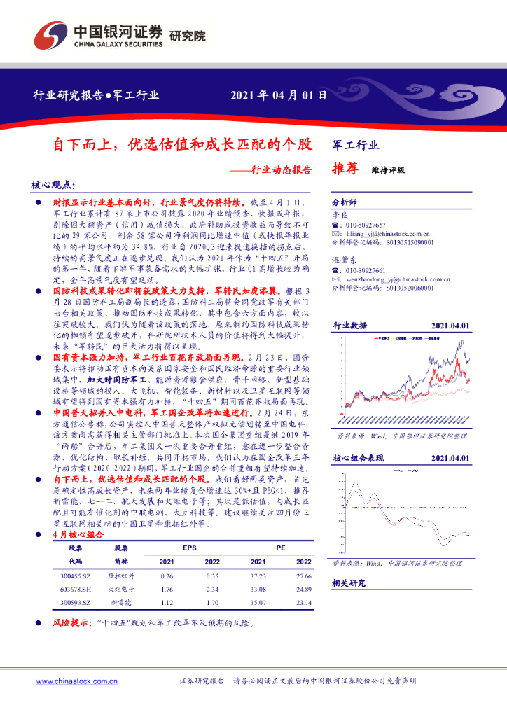中国银河:军工行业动态报告:自下而上,优选估值和成长匹配的个股.pdf