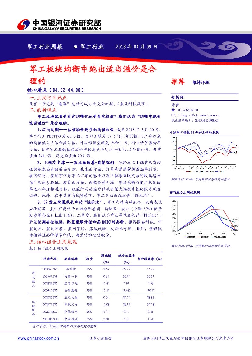 中国银河:军工行业周报:军工板块均衡中跑出适当溢价是合理的.pdf
