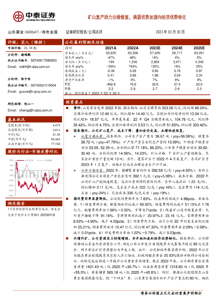 中泰证券:山东黄金(600547)-矿山复产助力业绩修复,资源优势加速向经济优势转化.pdf