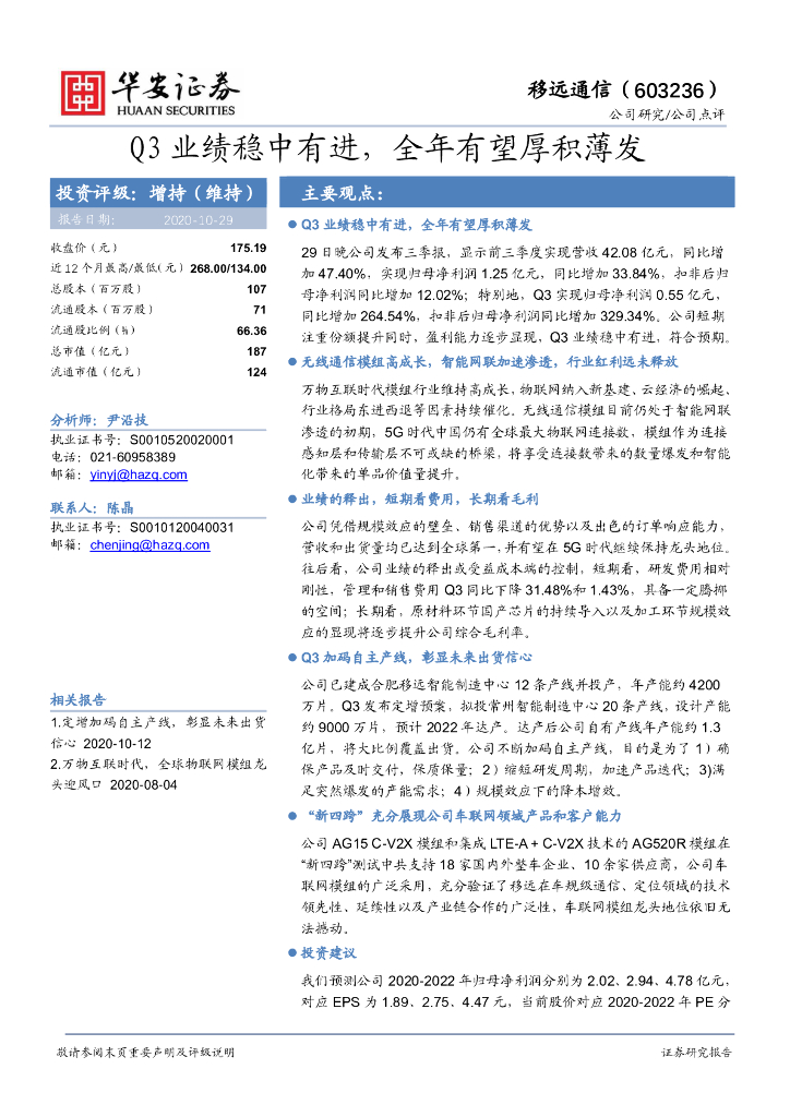 华安证券:移远通信(603236)-Q3业绩稳中有进,全年有望厚积薄发.pdf