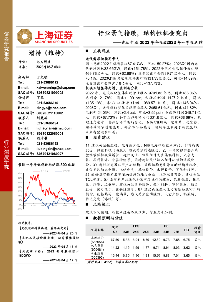 上海证券:光伏行业2022年年报&2023年一季报总结:行业景气持续,结构性机会突出.pdf