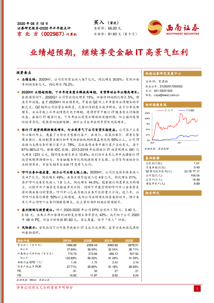 西南证券:京北方(002987)-业绩超预期,继续享受金融IT高景气红利.pdf