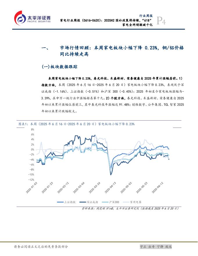 太平洋证券:家电行业周报:2025H2国补政策将持续,“618”家电全网销额破千亿.pdf