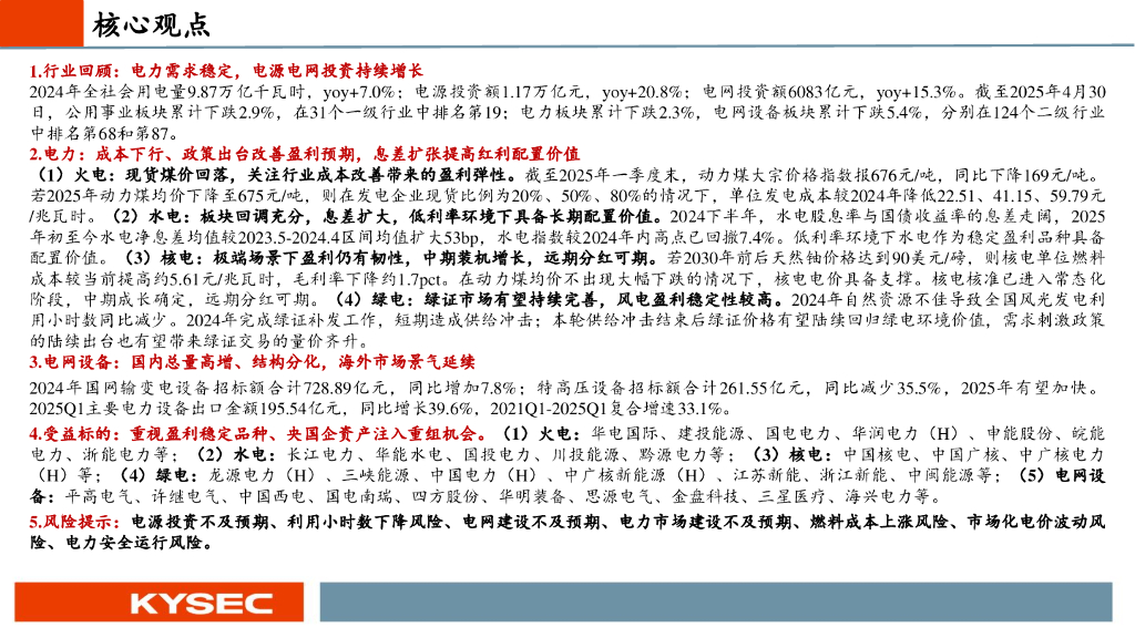 开源证券:电力行业2025中期投资策略:电力供需转向宽松,重视盈利稳定品种.pdf