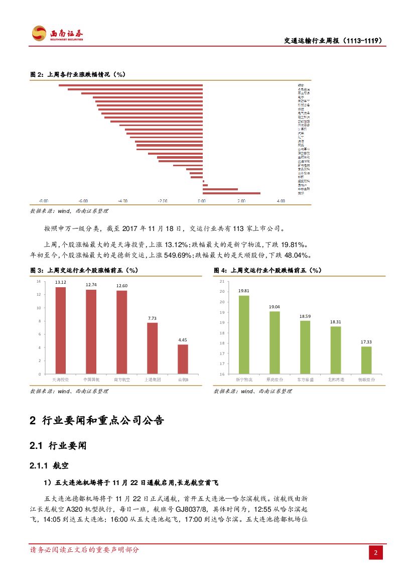 西南证券:交通运输行业周报:航空供给侧改革见成效,快递公司首次公布月度数据.pdf