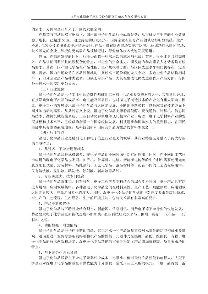 603078-江化微:江阴江化微电子材料股份有限公司2025年年度报告摘要.pdf