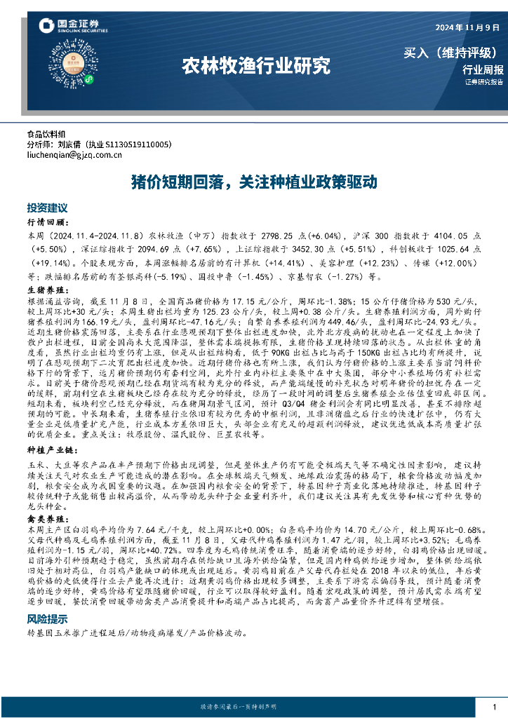 国金证券:农林牧渔行业周报:猪价短期回落,关注种植业政策驱动.pdf