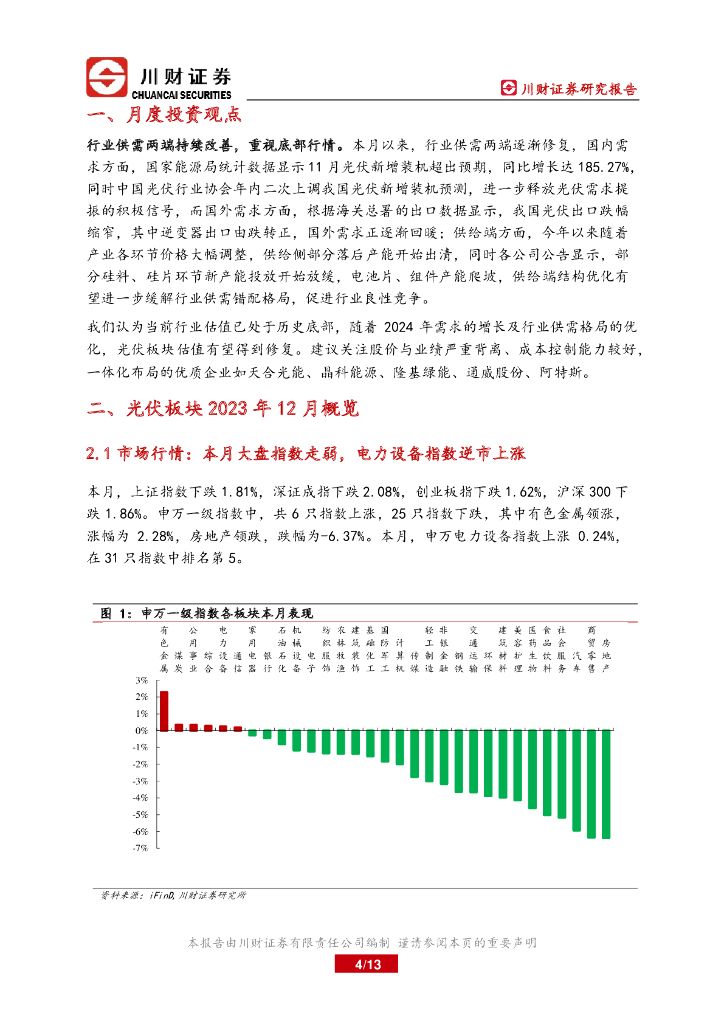 川财证券:光伏行业二零二三年十二月月报:行业供需两端持续改善,重视底部行情.pdf
