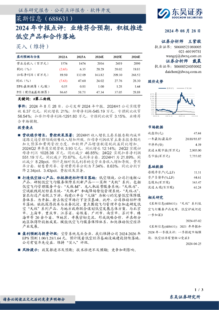 东吴证券:莱斯信息(688631)-2024年中报点评:业绩符合预期,积极推进低空产品和合作落地.pdf