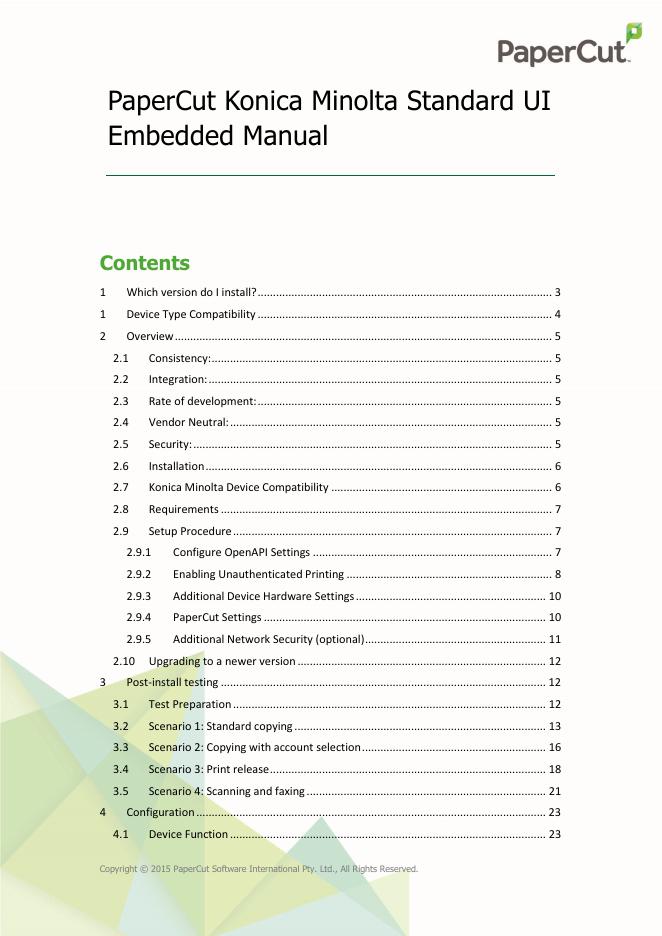 PaperCut Konica Minolta Standard UI Embedded安装指南.pdf
