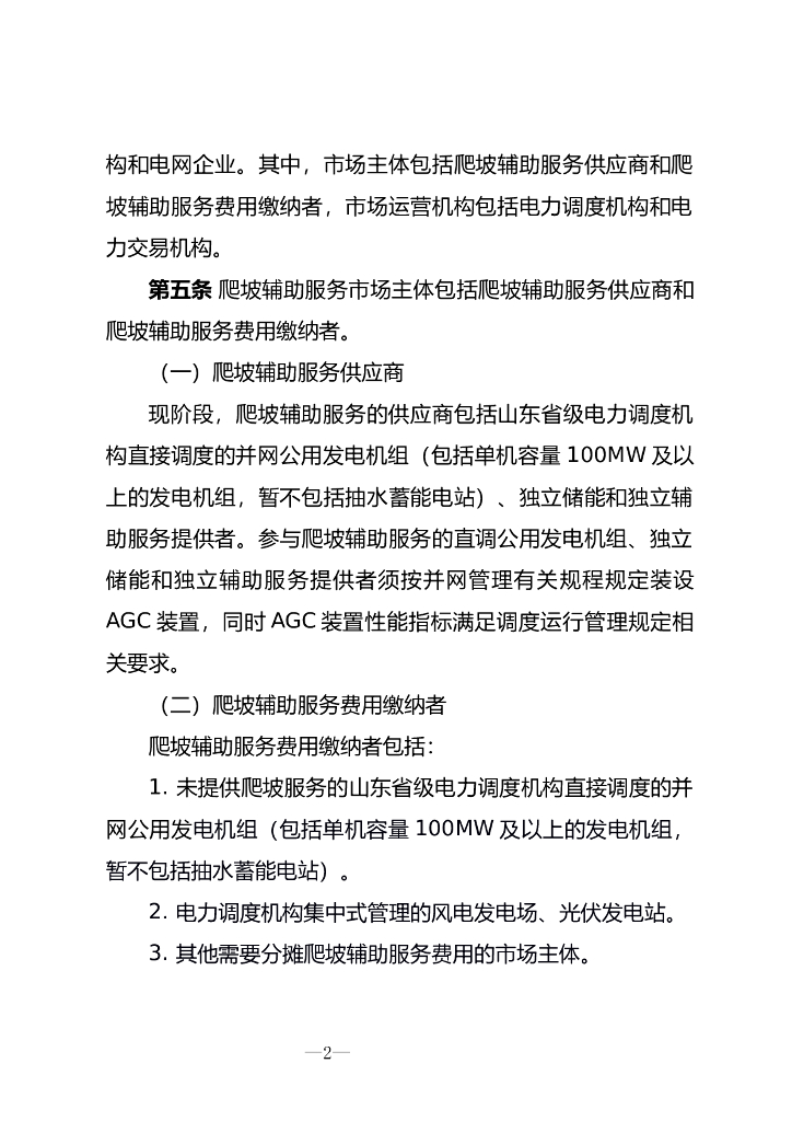 山东电力爬坡辅助服务市场交易规则(征求意见稿).doc