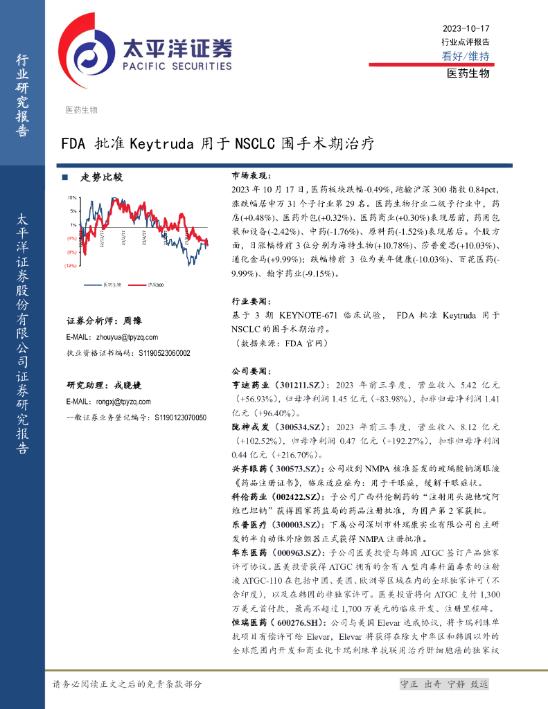 太平洋证券:医药生物:FDA批准Keytruda用于NSCLC围手术期治疗.pdf