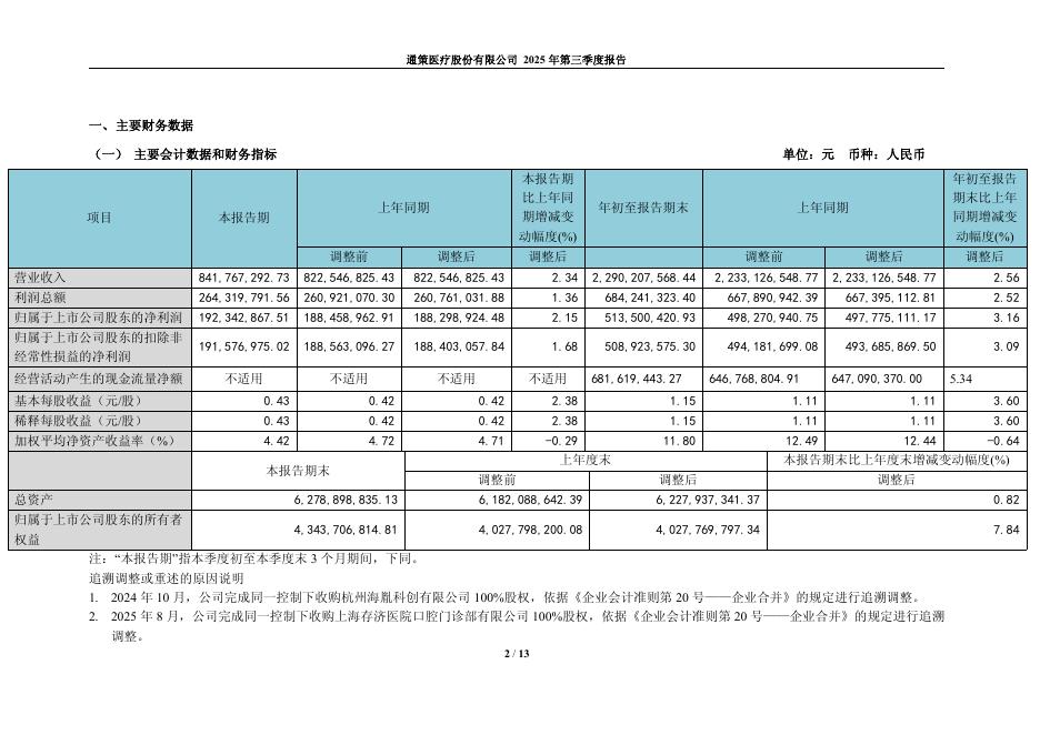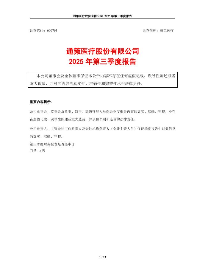 600763-通策医疗:通策医疗股份有限公司2025年第三季度报告.pdf