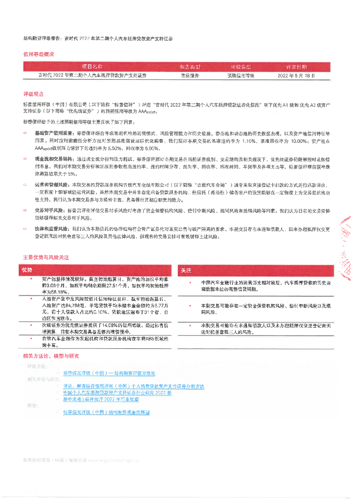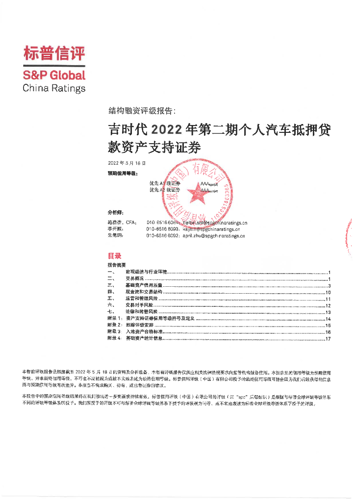 标普信评:吉时代2022年第二期个人汽车抵押贷款资产支持证券信用评级报告及跟踪评级安排.pdf