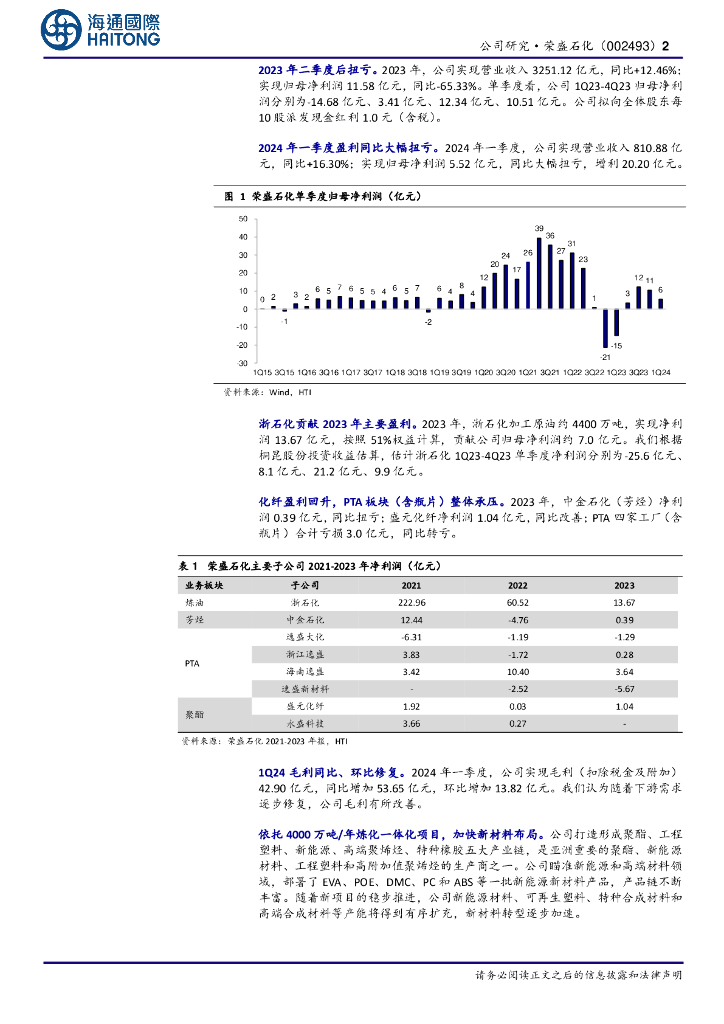 海通国际:荣盛石化(002493)-公司年报点评:2Q23以来扭亏,推进国内外战略布局.pdf