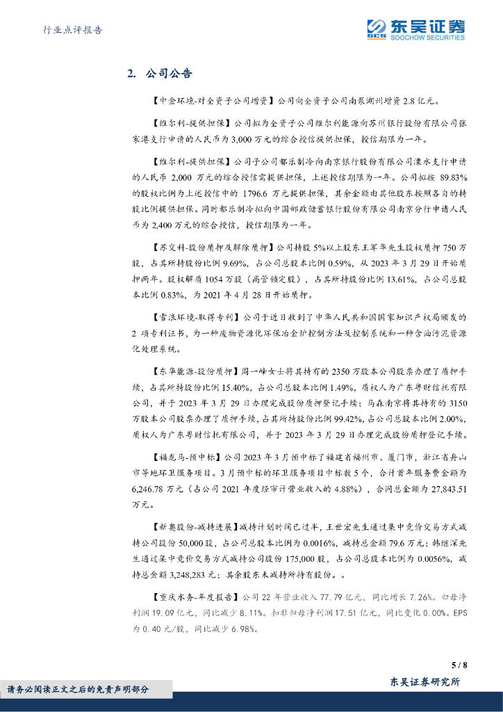 东吴证券:环保行业跟踪周报:【高能环境】受益金属价格上涨,【龙净环保】矿山绿电贡献业绩,重视水固红利价值