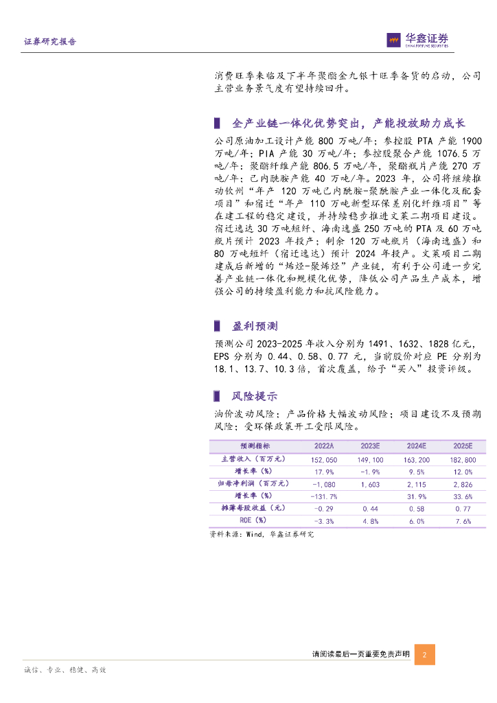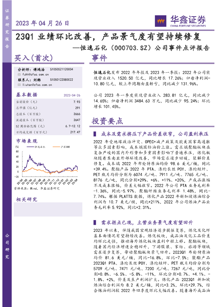 华鑫证券:恒逸石化(000703)-公司事件点评报告:23Q1业绩环比改善,产品景气度有望持续修复.pdf