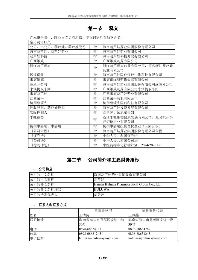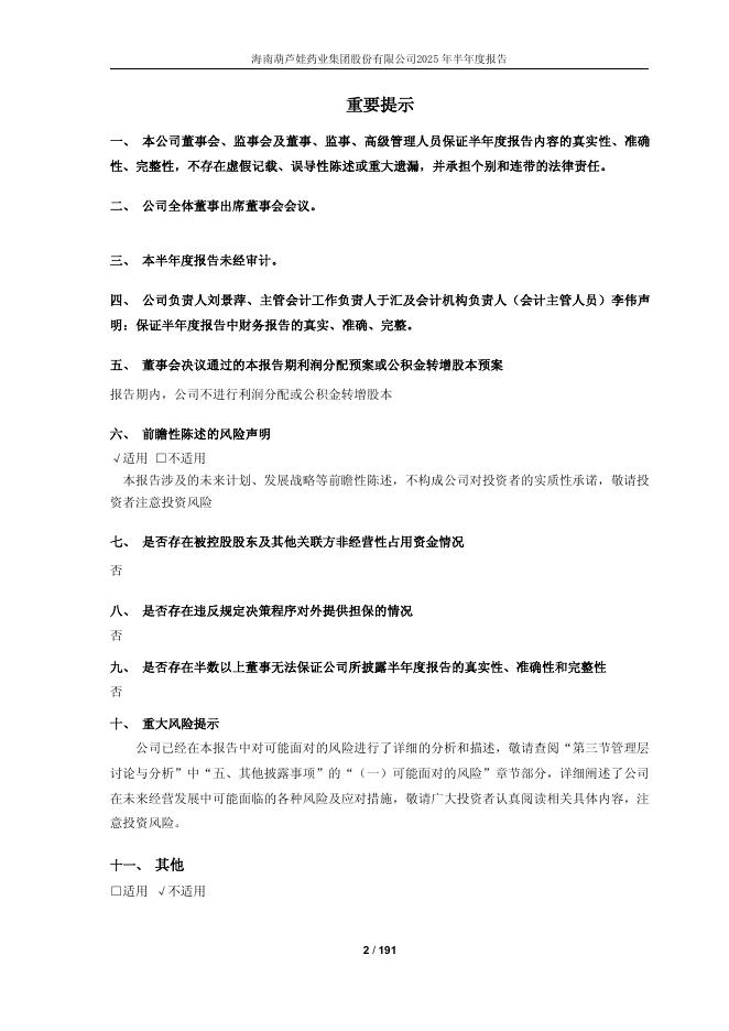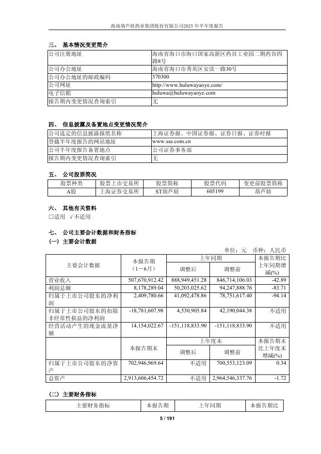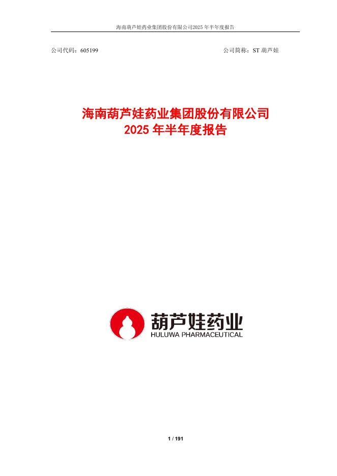 605199-ST葫芦娃:海南葫芦娃药业集团股份有限公司2025年半年度报告.pdf