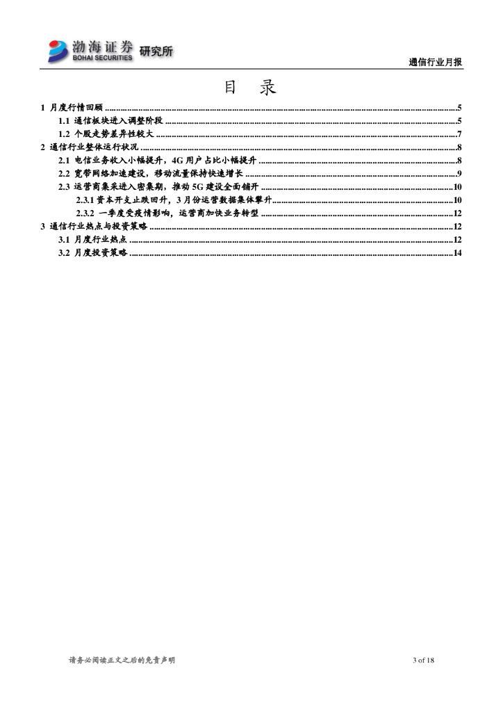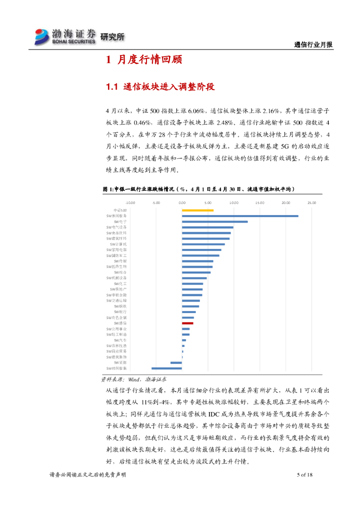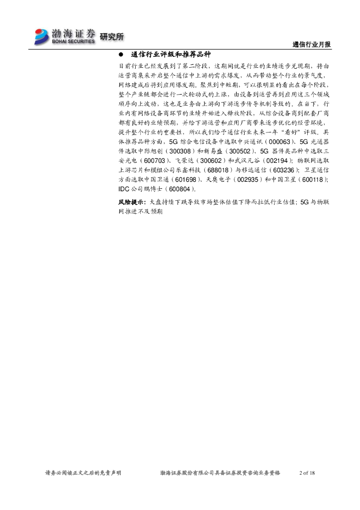 渤海证券:通信行业月报:运营商5G集采落地,关注行业内确定性品种.pdf