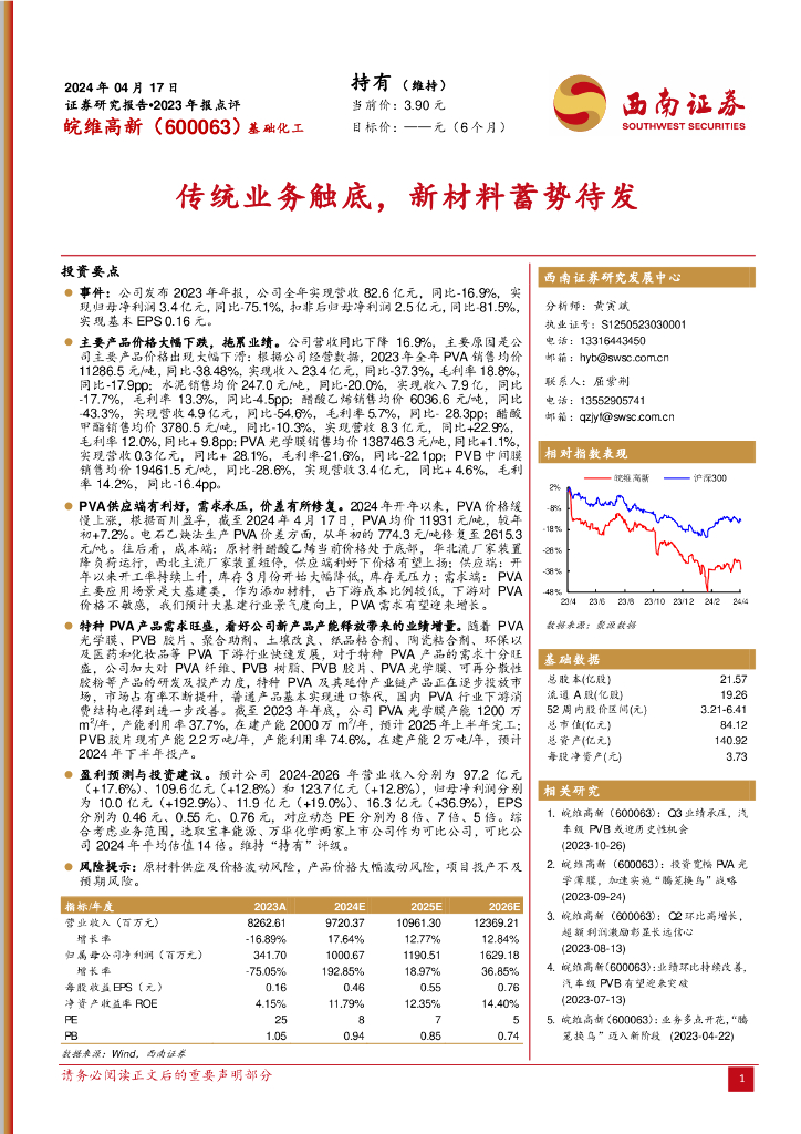 西南证券:皖维高新(600063)-传统业务触底,新材料蓄势待发.pdf