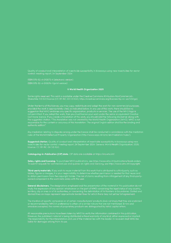 WHO世界卫生组织:使用新杀虫剂进行媒介控制的生物测定中杀虫剂易感性的质量和解释-2024年9月24日会议报告(英文版).pdf