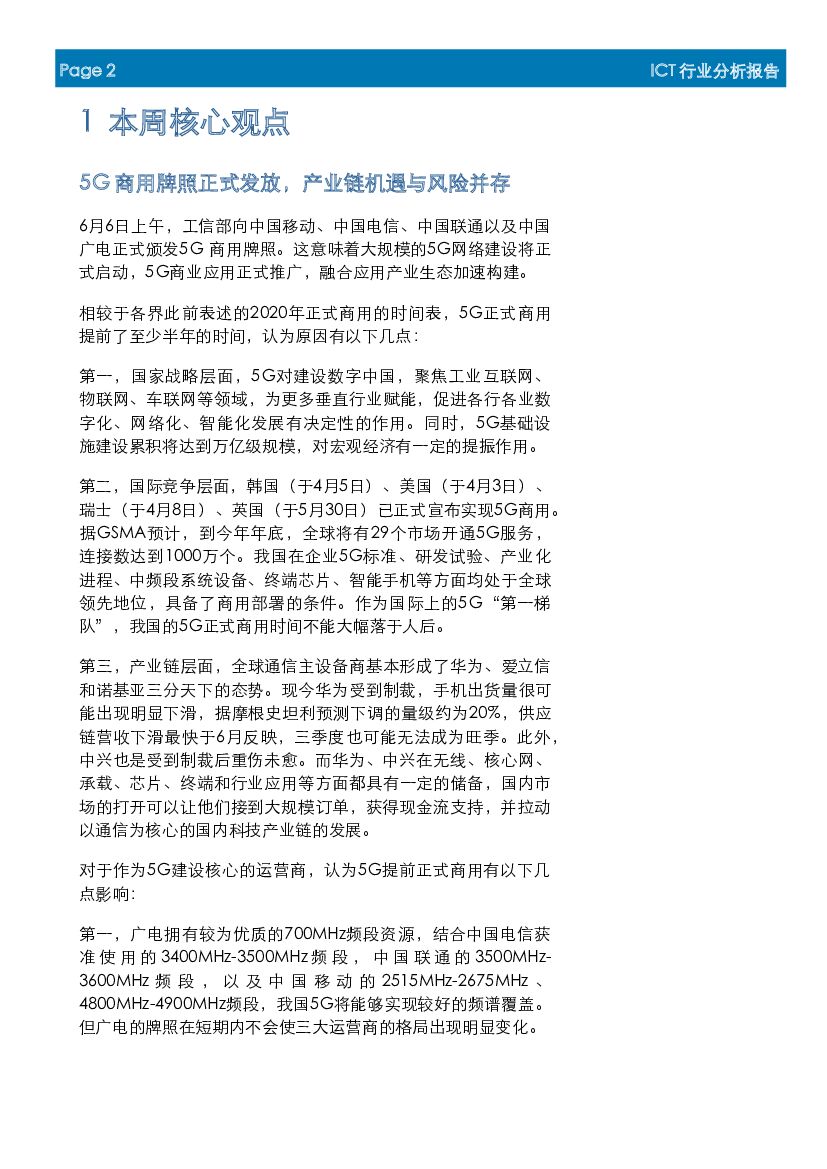 首创证券:ICT行业周报:5G商用牌照正式发放,产业链机遇与风险并存.pdf