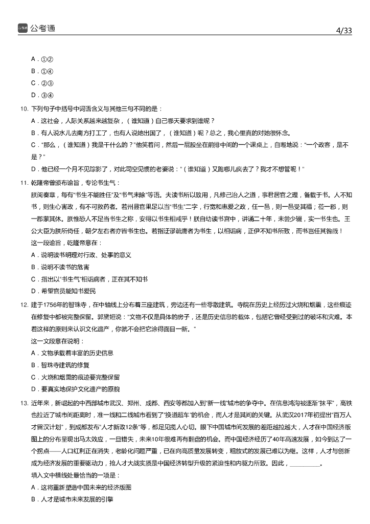2019年上海公务员考试行测真题及答案(A卷).pdf