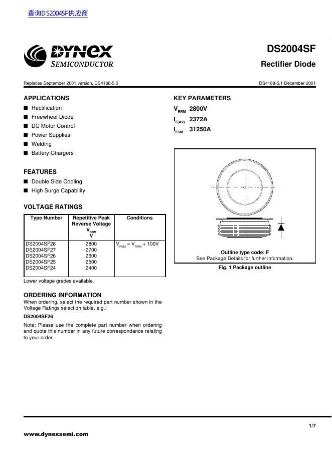 DYNEX DS2004SF Rectifier Diode 数据手册.pdf