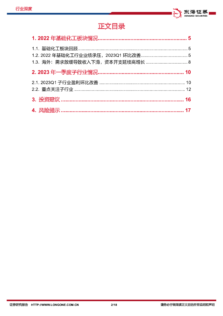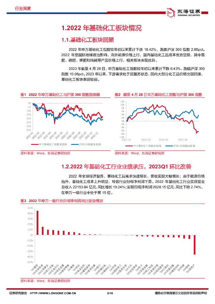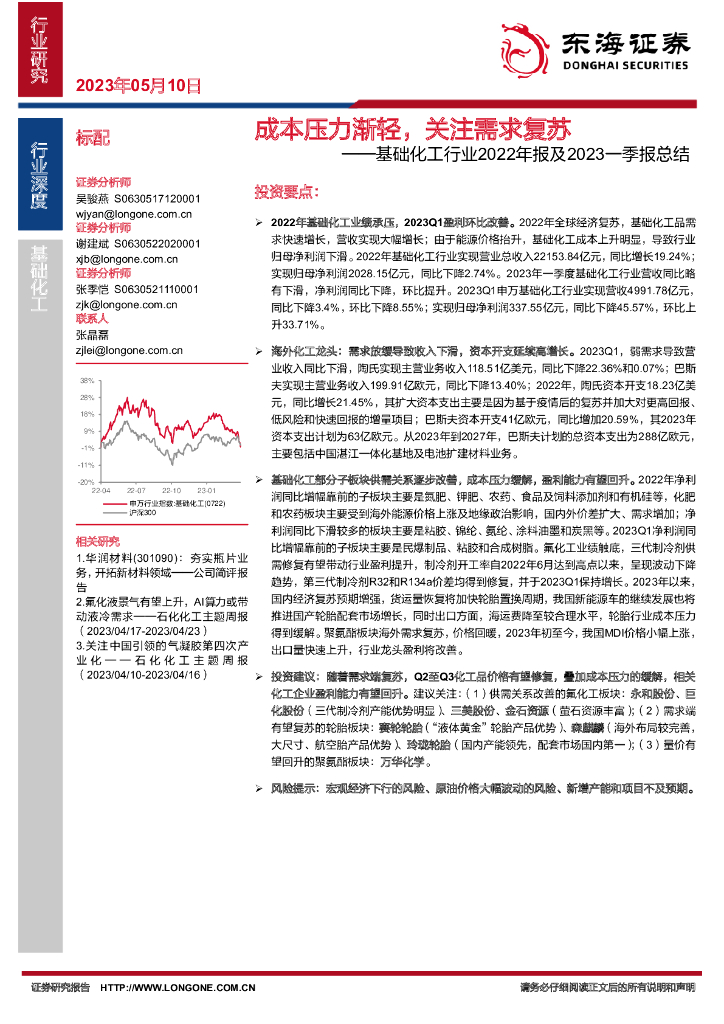 东海证券:基础化工行业2022年报及2023一季报总结:成本压力渐轻,关注需求复苏.pdf
