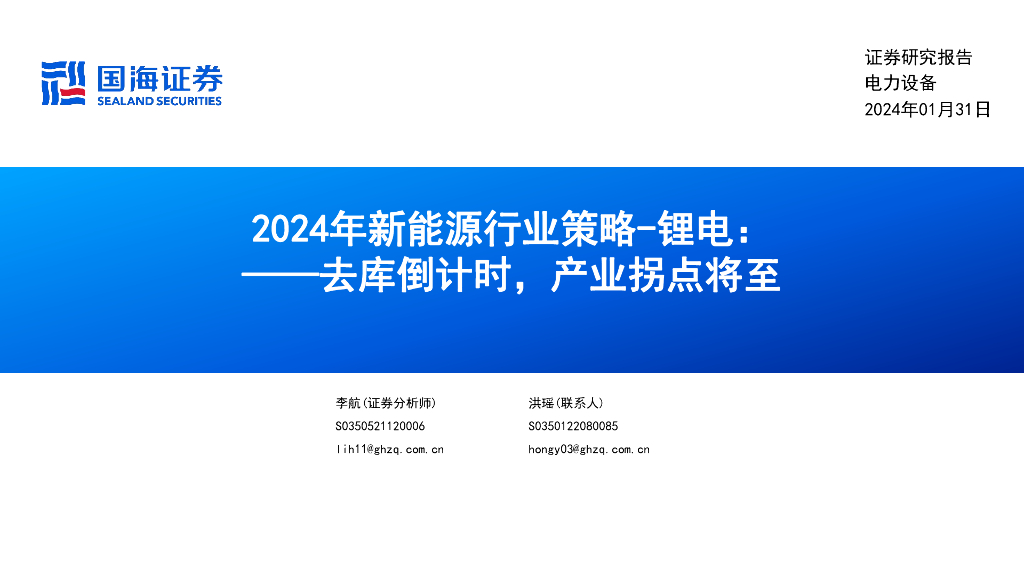 国海证券:2024年新能源行业策略-锂电:去库倒计时,产业拐点将至.pdf