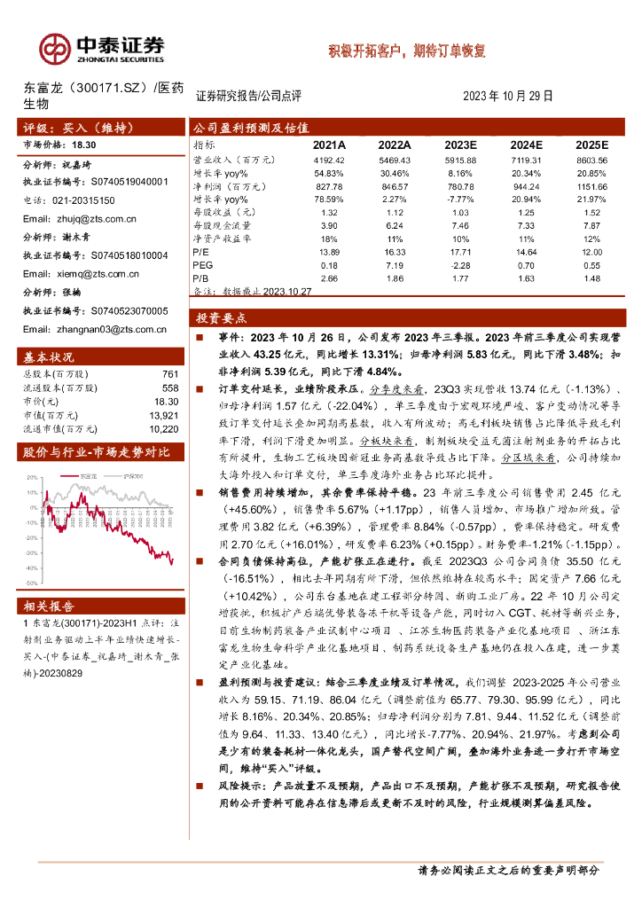 中泰证券:东富龙(300171)-积极开拓客户,期待订单恢复.pdf
