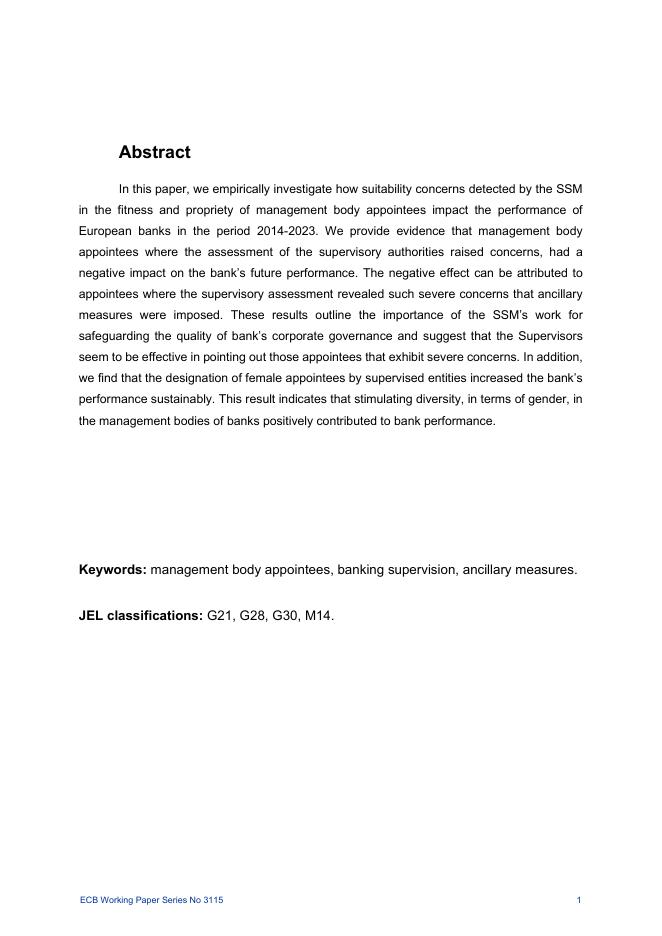 欧洲央行:SSM的适宜性和适当性工作对银行绩效的重要性-来自10年SSM工作的证据(英文版).pdf