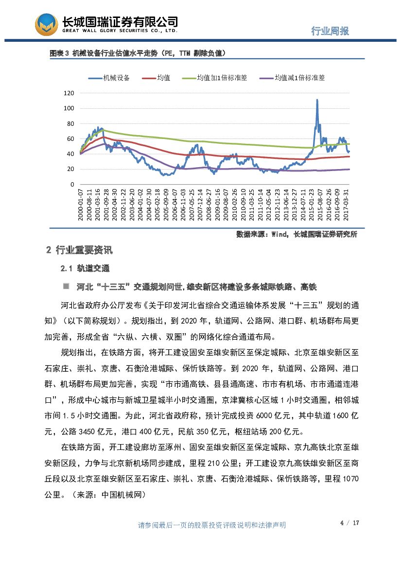 长城国瑞证券:机械设备行业周报2017年第24期(总第46期):工程机械行业持续回暖,雄安将建设城际铁路、高铁.pdf