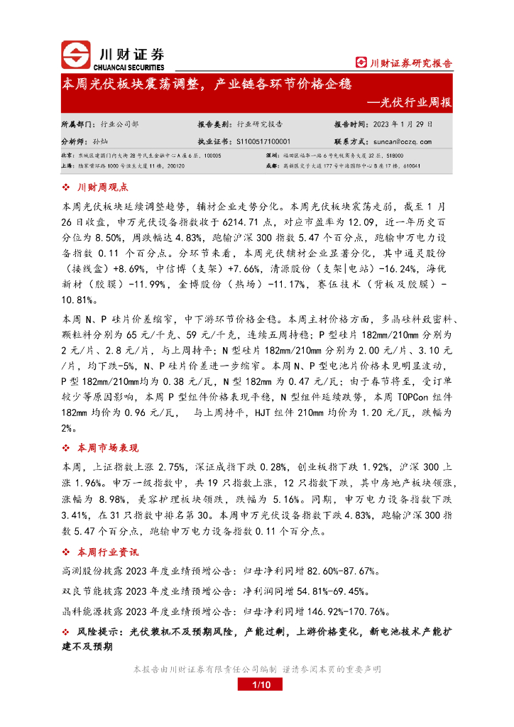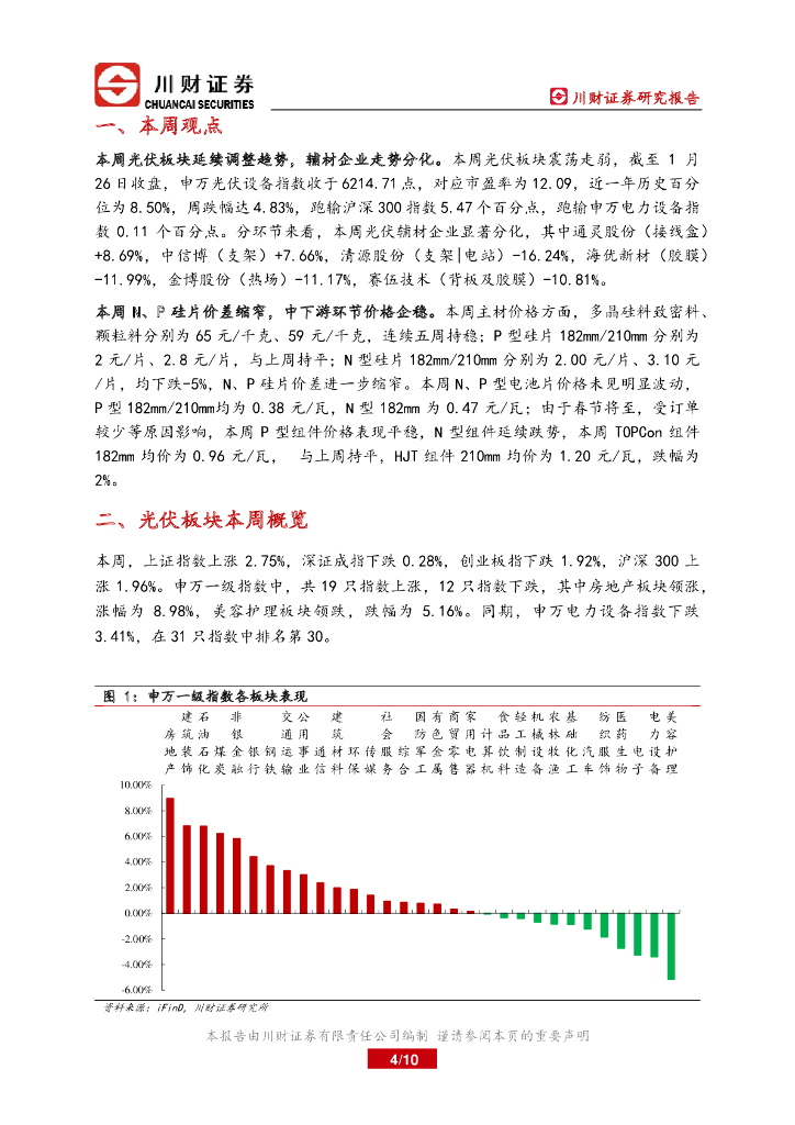川财证券:光伏行业周报:本周光伏板块震荡调整,产业链各环节价格企稳.pdf