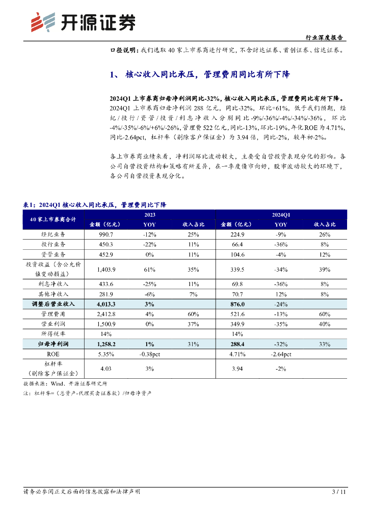 开源证券:证券行业2024Q1综述:手续费收入承压,自营结构差异导致各券商业绩分化.pdf