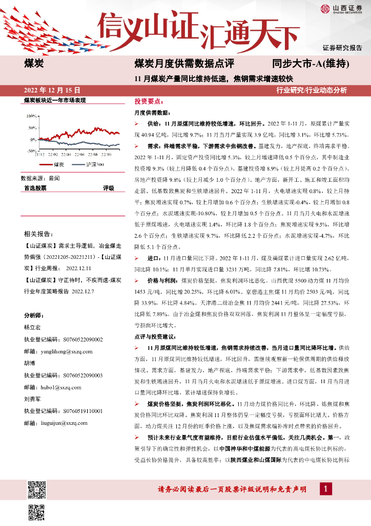 山西证券:煤炭月度供需数据点评:11月煤炭产量同比维持低速,焦钢需求增速较快.pdf