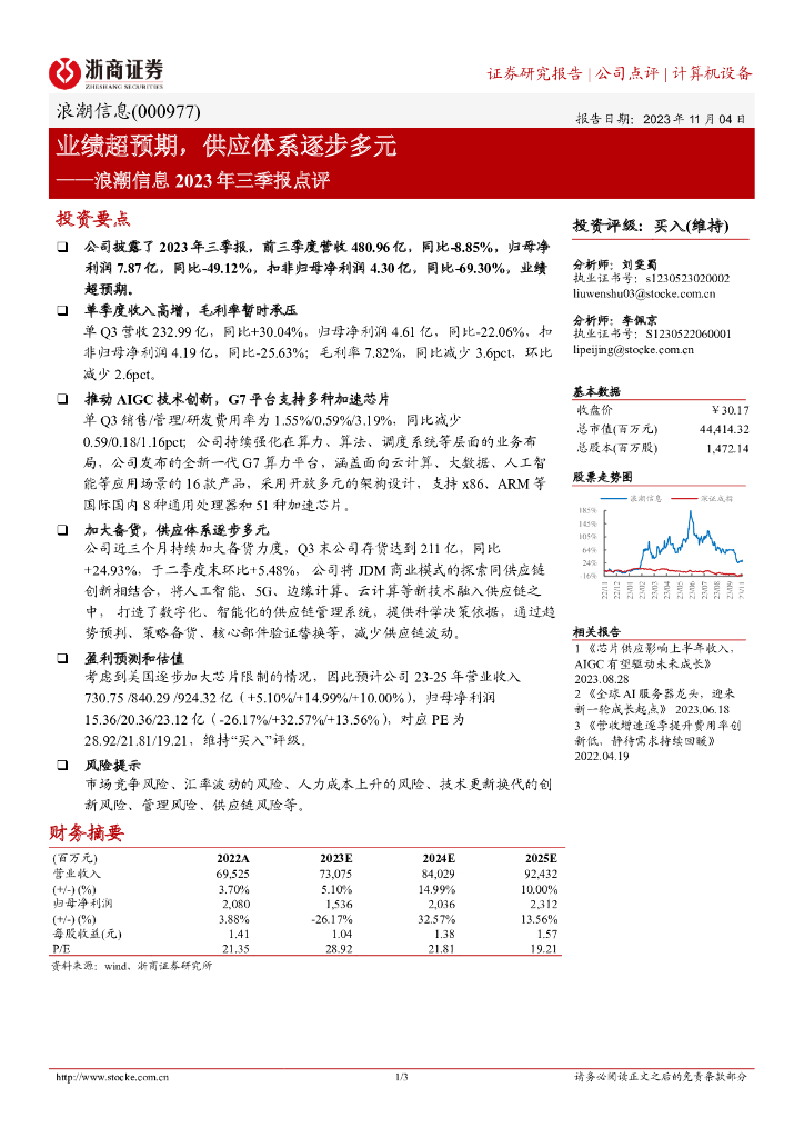 浙商证券:浪潮信息2023年三季报点评:业绩超预期,供应体系逐步多元.pdf