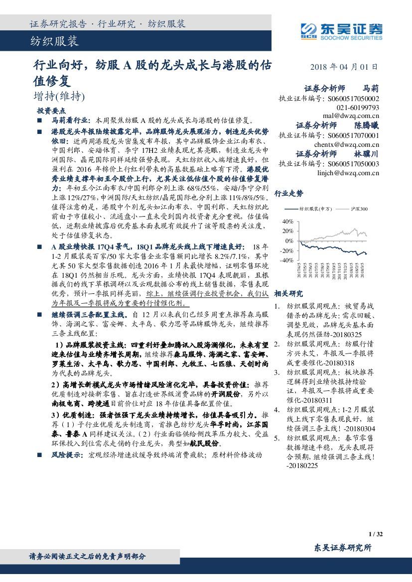 东吴证券:纺织服装:行业向好,纺服A股的龙头成长与港股的估值修复.pdf