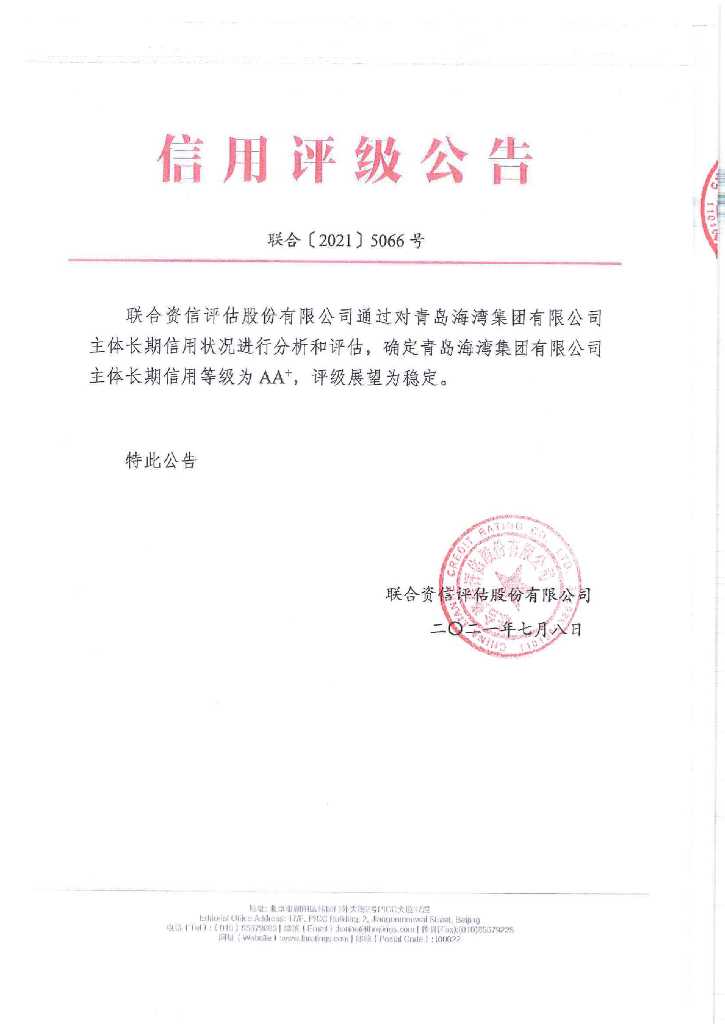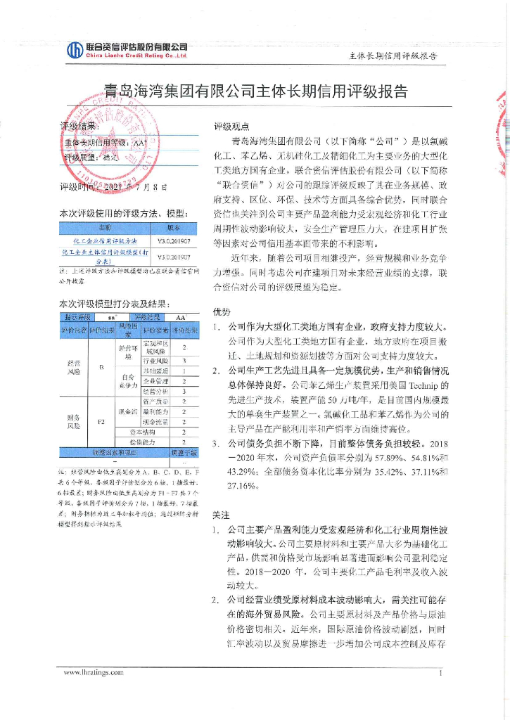 联合资信:青岛海湾集团有限公司主体长期信用评级报告.pdf