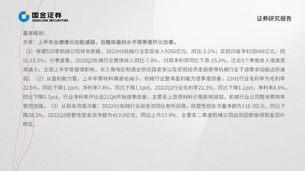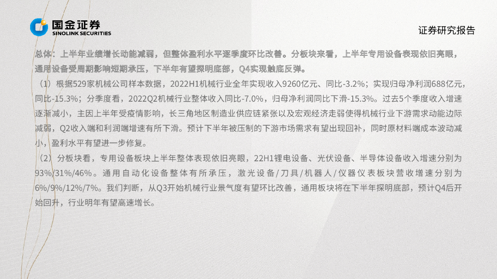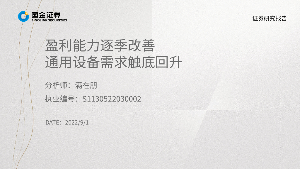 国金证券:机械行业掘金·中报业绩总结:盈利能力逐季改善 通用设备需求触底回升.pdf