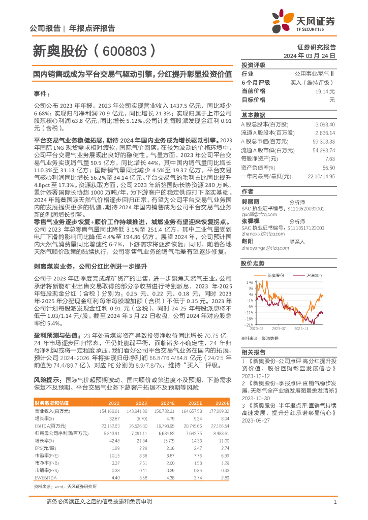 天风证券:新奥股份(600803)-国内销售或成为平台交易气驱动引擎,分红提升彰显投资价值.pdf