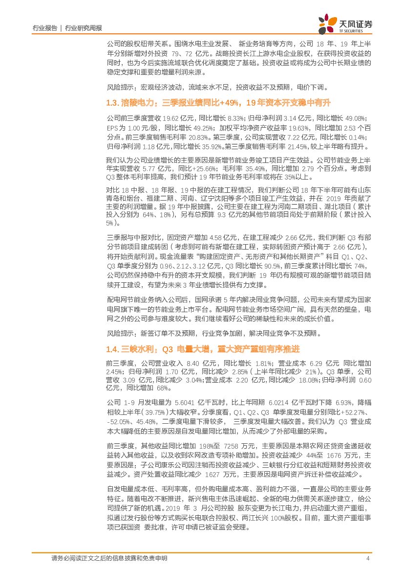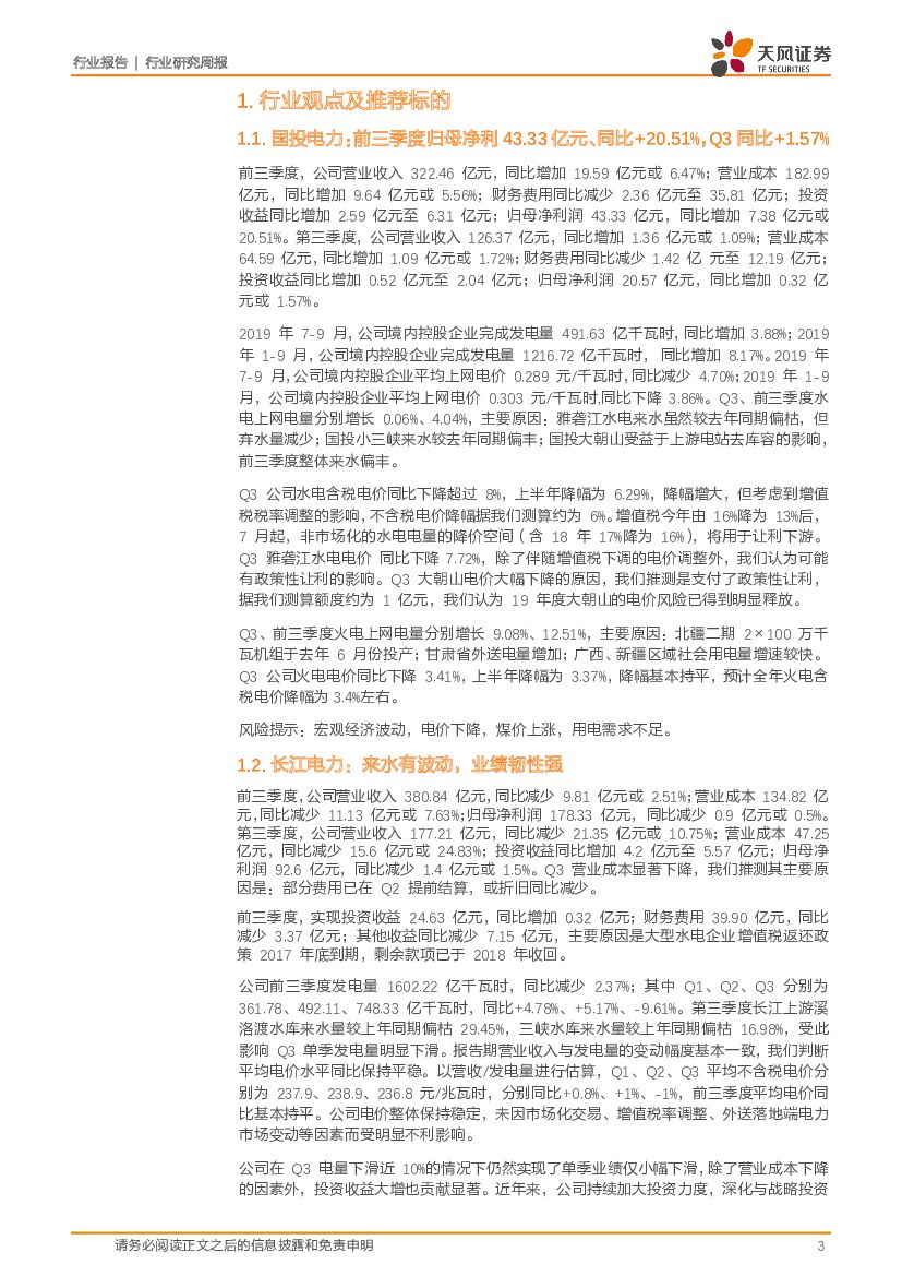 天风证券:公用事业 行业研究周报:本周主要电力公司三季报点评(国投电力、长江电力、涪陵电力、三峡水利).pdf