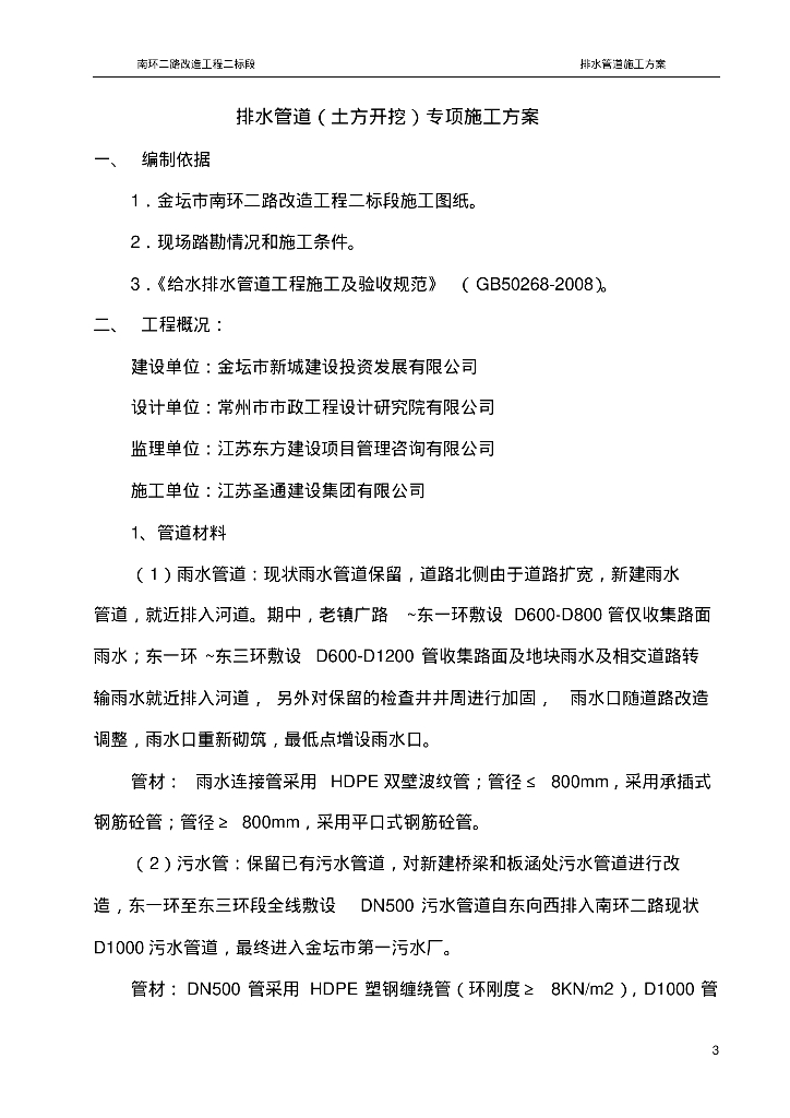 [江苏]南环二路改造工程排水管道土方开挖专项施工方案(市政).pdf