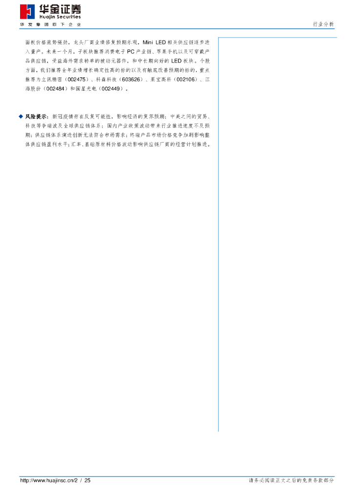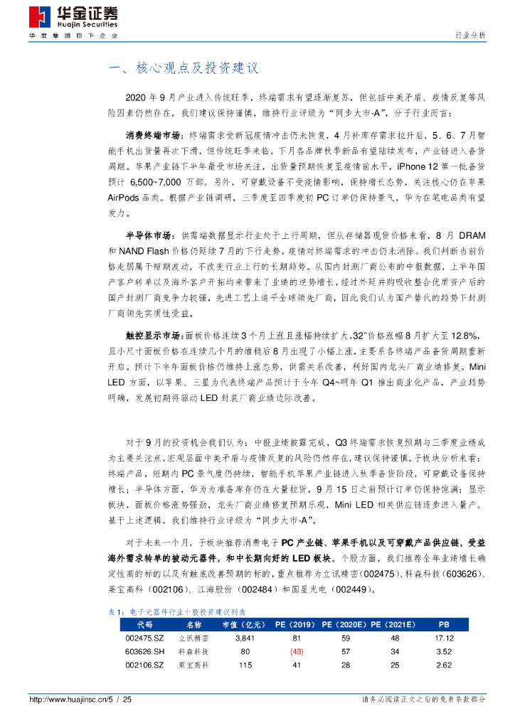 华金证券:电子元器件2020年9月投资策略:谨慎对待外部风险 选择基本面确定性高的板块.pdf