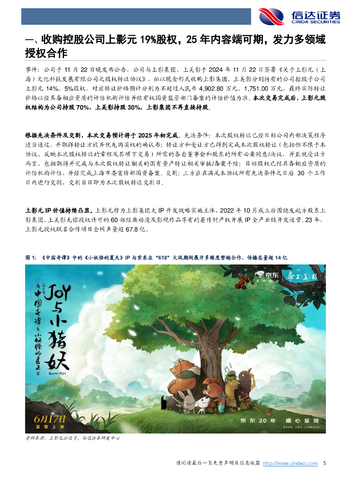 信达证券:上海电影跟踪报告:收购控股公司上影元19%股权,25年内容端可期,发力多领域授权合作.pdf