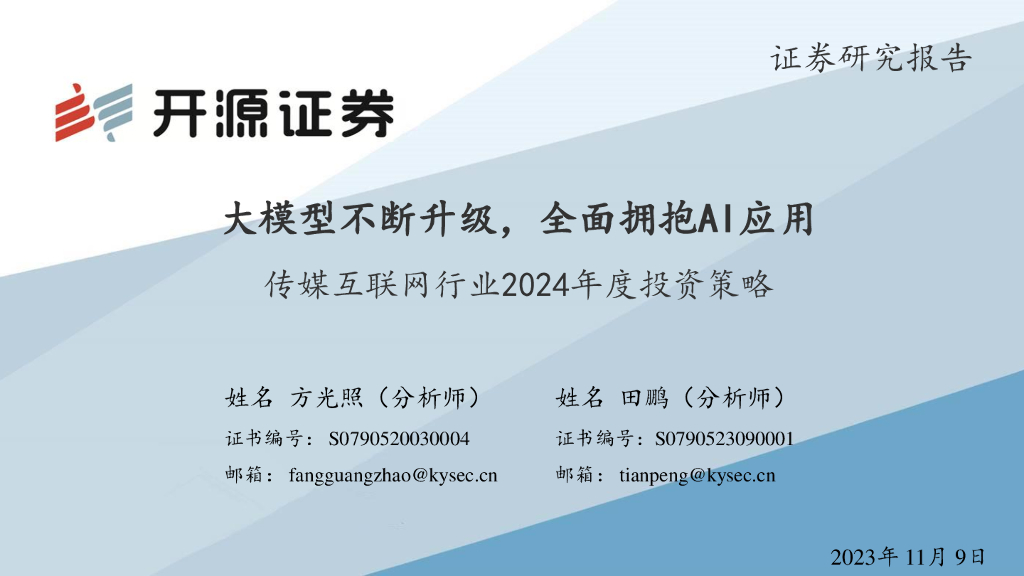 开源证券:传媒互联网行业2024年度投资策略:大模型不断升级,全面拥抱AI应用.pdf