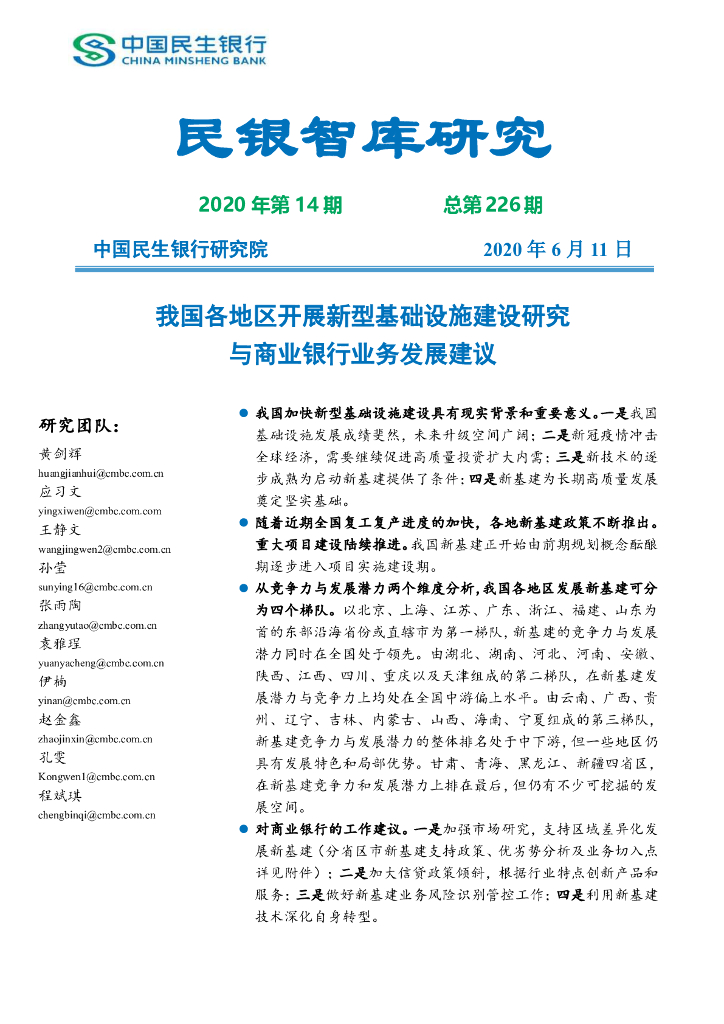 中国民生银行:我国各地区开展新型基础设施建设研究与商业银行业务发展建议.pdf