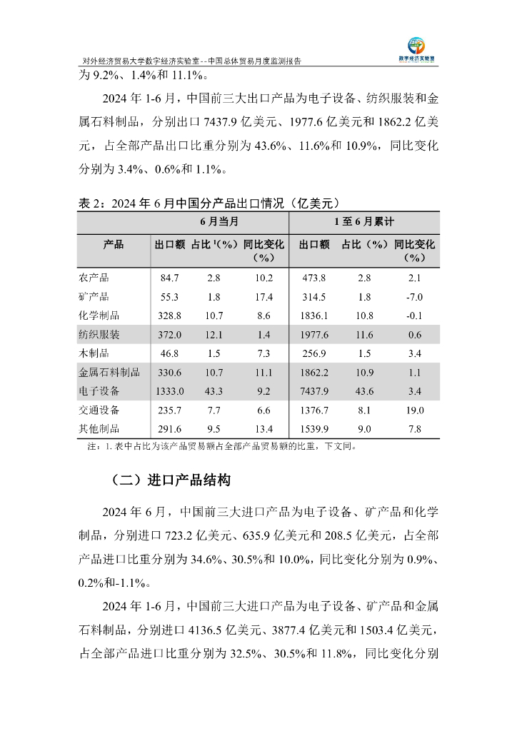 对外经济贸易大学:中国总体贸易月度监测报告(2024年1-6月).pdf