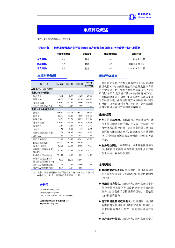 新世纪:徐州高新技术产业开发区国有资产经营有限公司跟踪评级报告.pdf